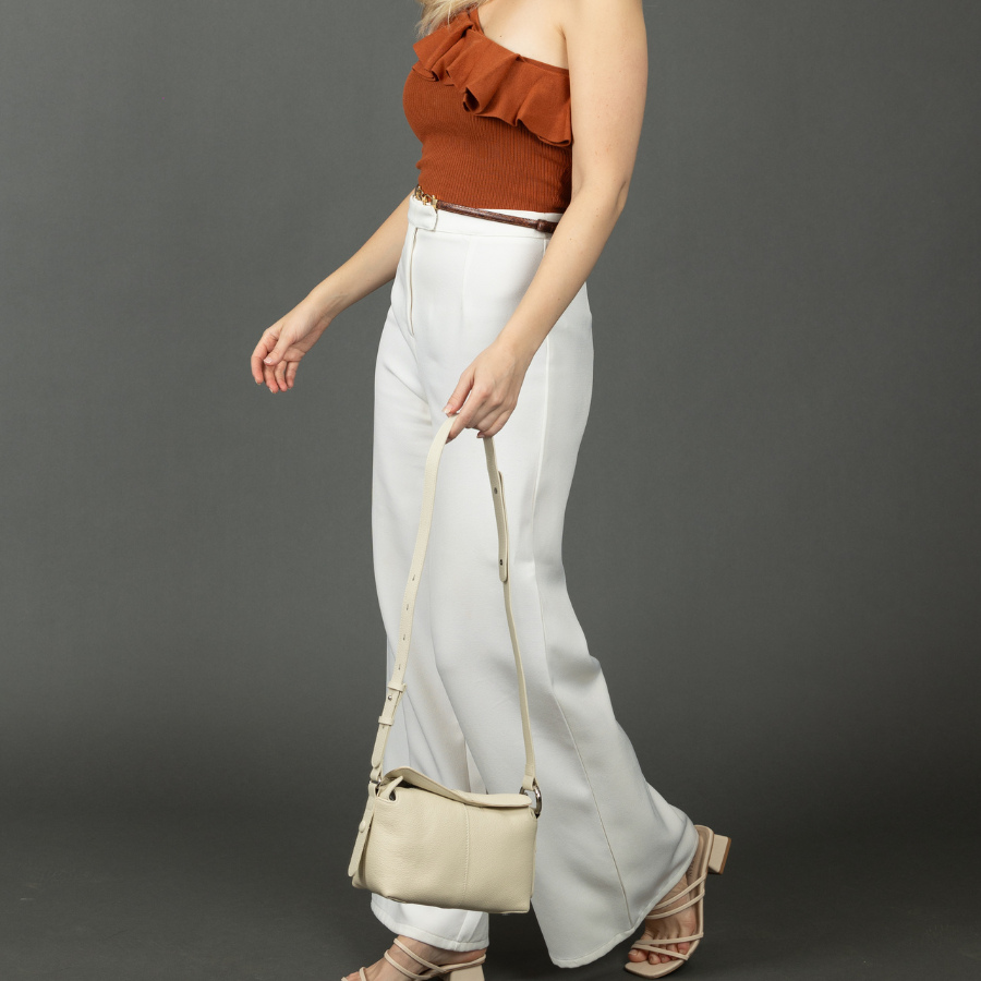 Lidia Women Leather Bag- Mini Size Shoulder Bag, Soft Leather Crossbody Bag with Adjustable Strap and Zipper Closure, White Color Bag
