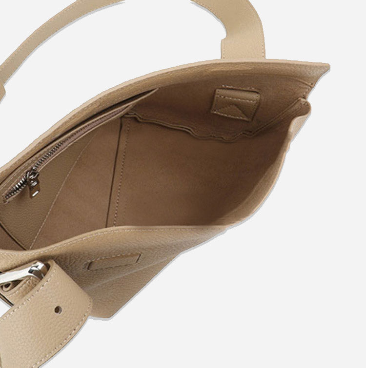 Elevate your style with our luxurious brown litchi grain leather crossbody bag featuring a soft wide strap and chic buckle detail. Crafted for comfort and elegance, this versatile purse adds a touch of sophistication to any outfit. Shop now for the perfect blend of fashion and functionality!