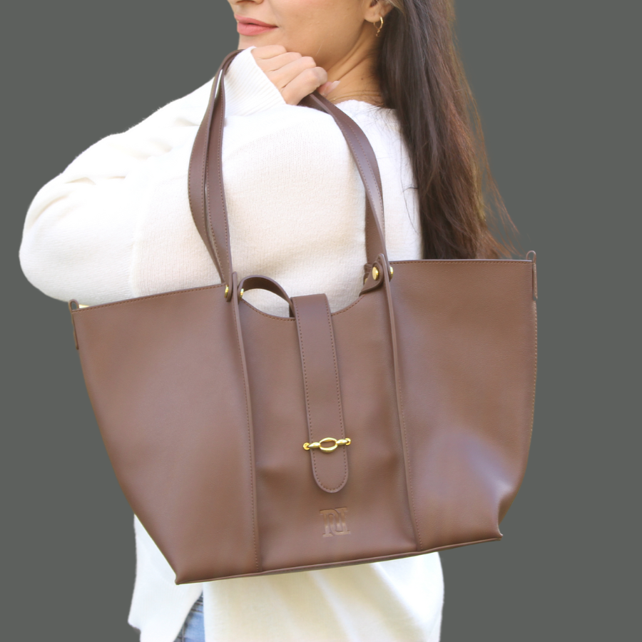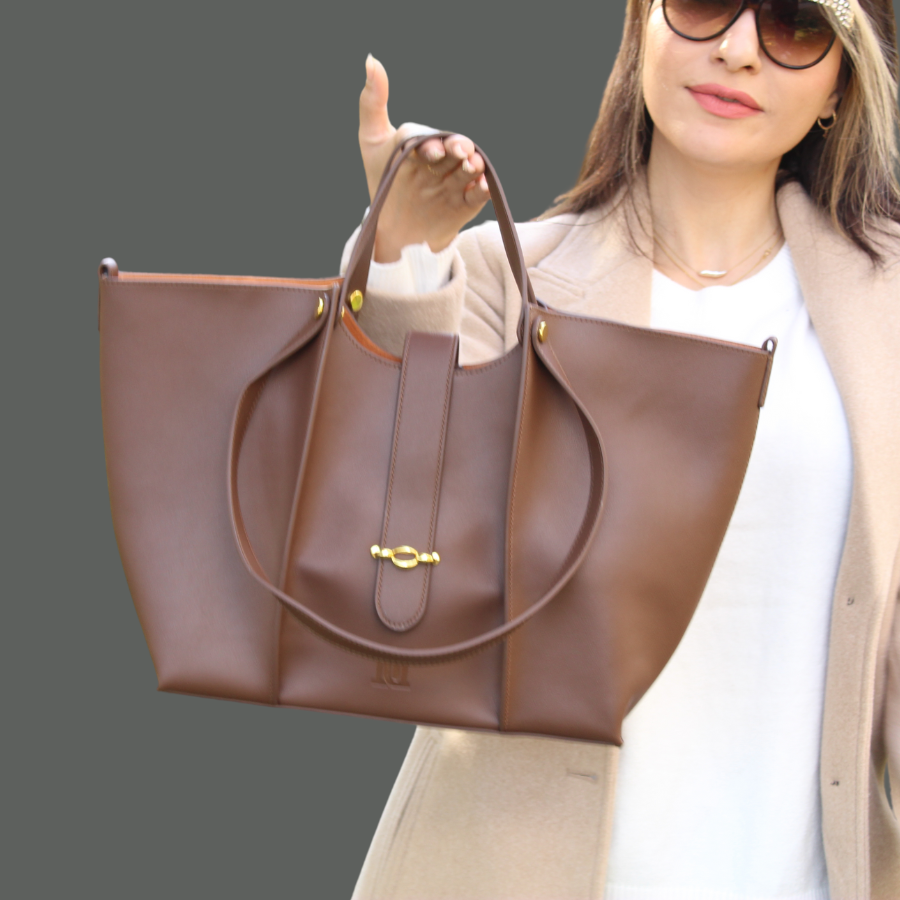 Women's Large Leather Tote with Buckle Closure - Top Handle Tote Bag in Large Size, Leather Handbag, women's handbag for work