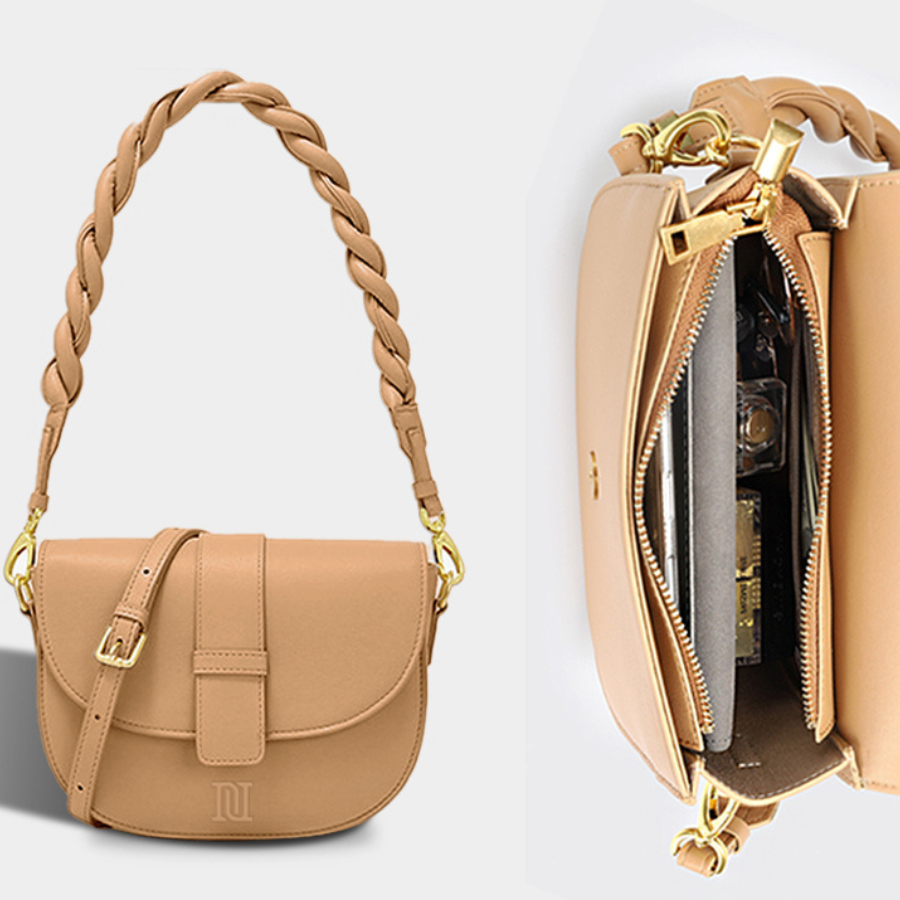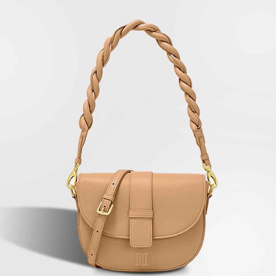 This twisted light brown handbag offers a sophisticated shoulder strap design, perfect for a chic yet comfortable fit. Luxuriously crafted with the highest quality materials, this bag makes for an ideal gift for any fashionable woman.